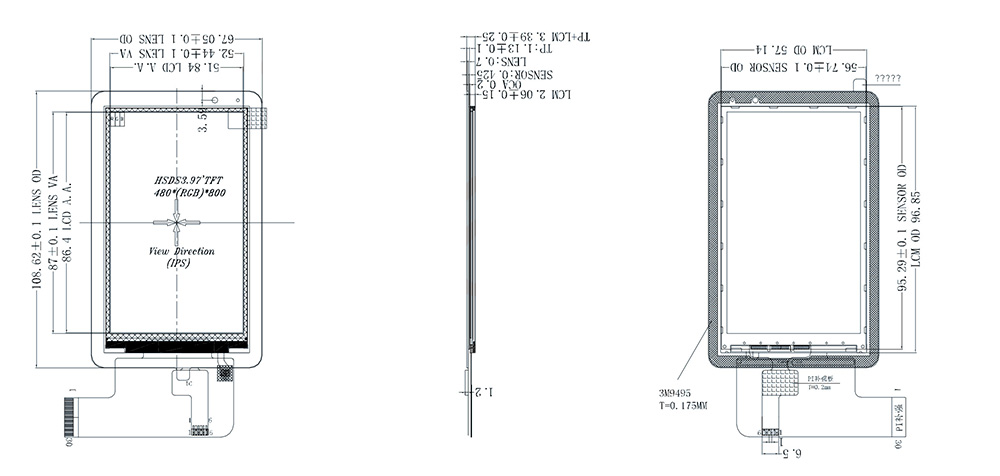 | Размер контура | 67,05(Н)*108,62(В)*3,39(Т) | Сенсорный интерфейс | ИИК |