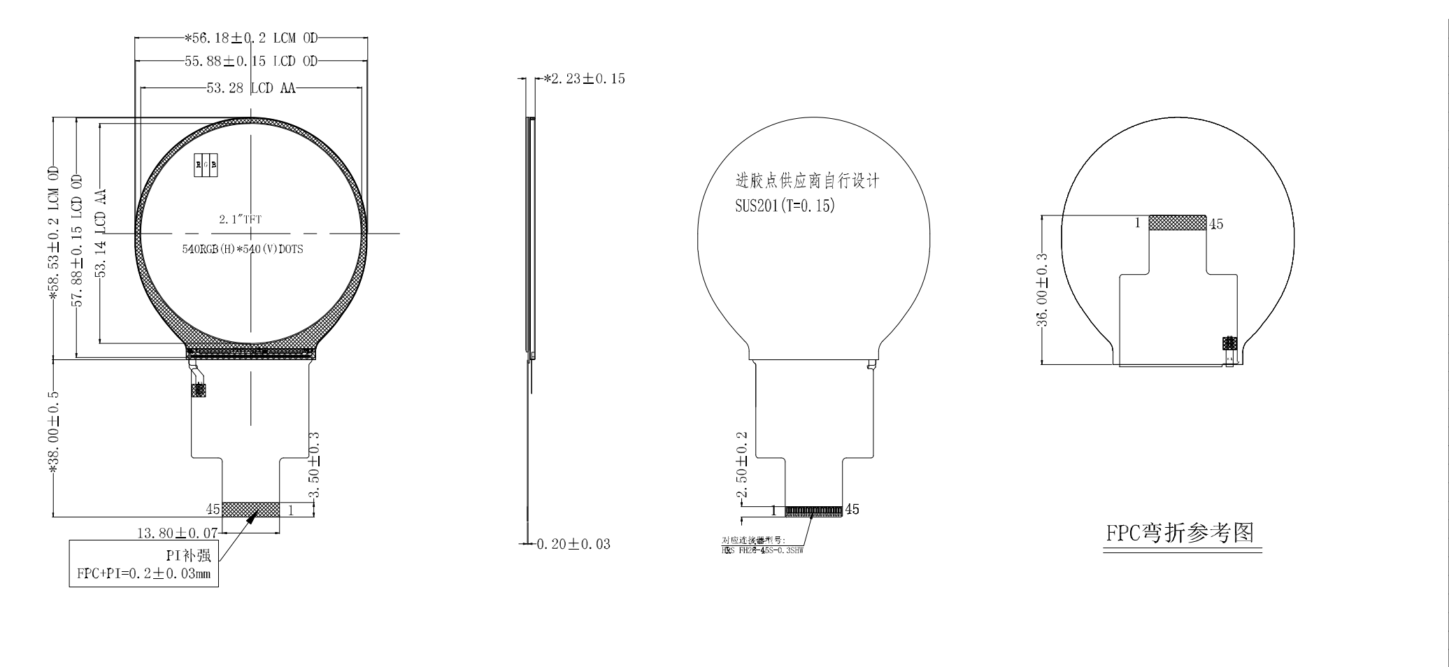 2,1-дюймовый круглый ЖК-дисплей Incell 540*540 QSPI/SPI/MCU