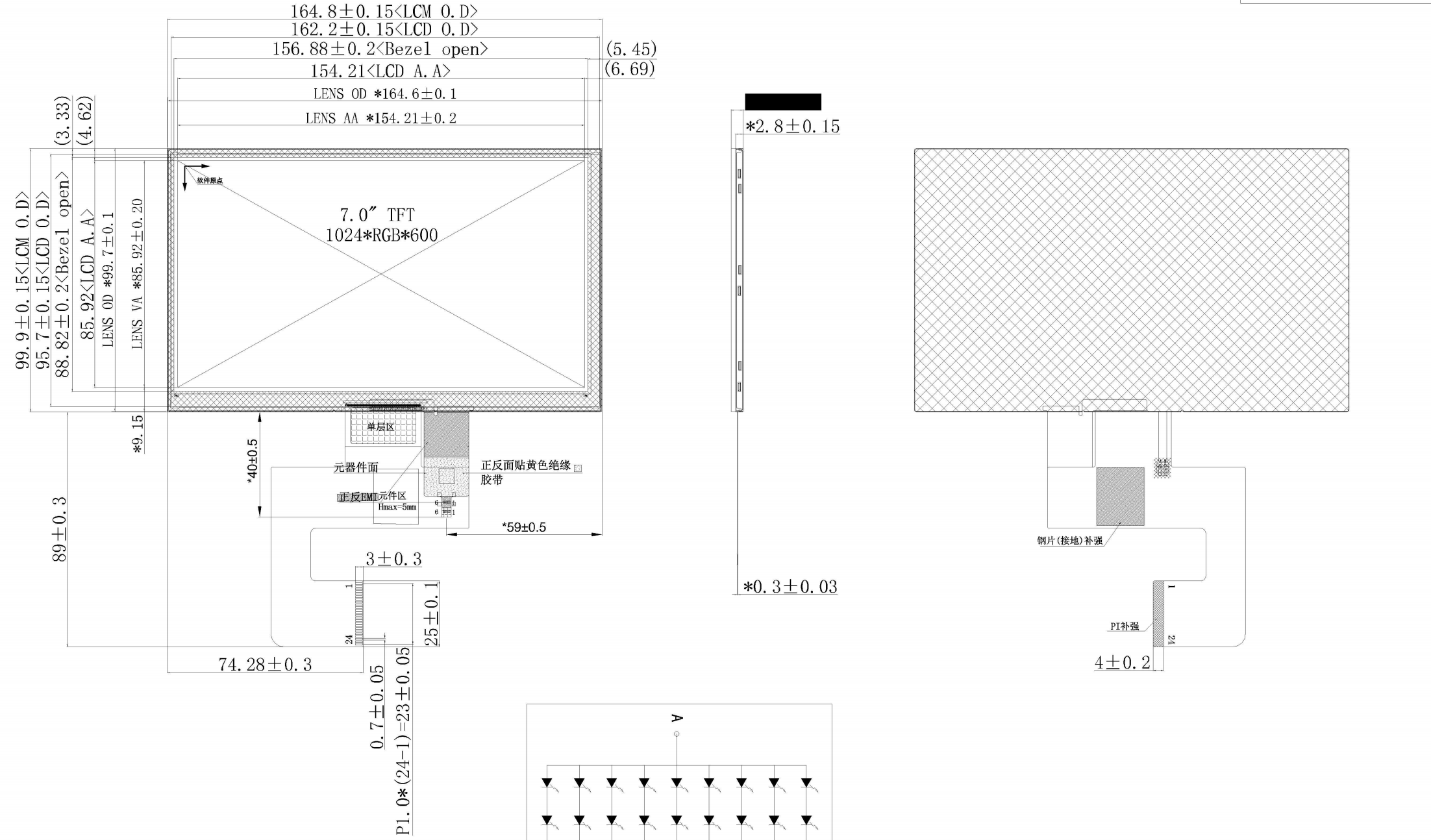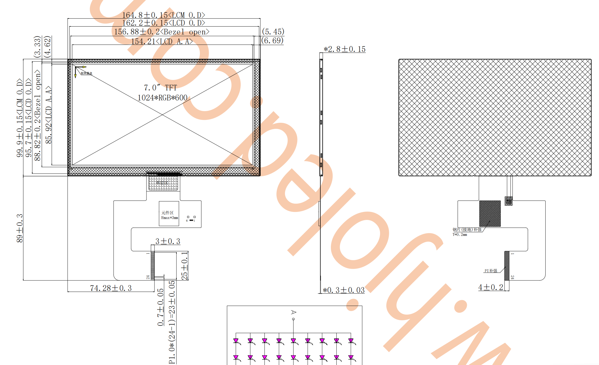 7-дюймовые альбомные TFT-экраны обычно имеют разрешение 1024*600 и 4-канальный интерфейс MIPI. Двухканальные ЖК-экраны встречаются редко, а те, в которых емкостный кабель сенсорного экрана объединен с кабелем ЖК-экрана, встречаются еще реже, что увеличивает рабочую нагрузку для инженеров по аппаратному обеспечению. Инженеры Shenzhen Hongjia Technology успешно выпустили в серийное производство 7-дюймовые горизонтальные IPS-экраны с разрешением 1024*600, двухканальным интерфейсом MIPI и емкостным сенсорным экраном. 24-контактный разъем объединяет сигналы сенсорного экрана и дисплея с помощью единого кабельного интерфейса, что упрощает проектирование пользователем.